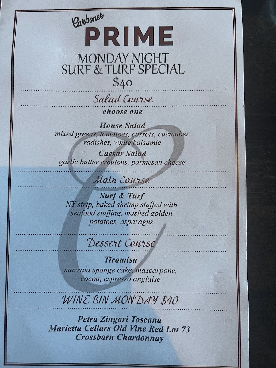 Whether you’re celebrating a special occasion or simply indulging in a night out, Carbone's Prime consistently exceeds expectations with its dedication to exceptional food and service. A must-visit for any culinary enthusiast!